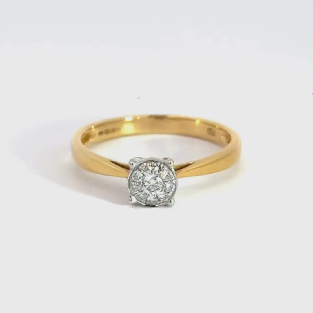 Stunning 18CT Gold / White gold Diamond solitaire cluster of brilliant round cut diamonds with 4 prong setting 0.15ct Diamond total. Size O