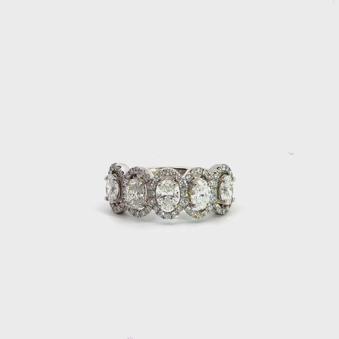 18CT W/GOLD 5 OVAL HALO DIA 1.75CT H/SI1