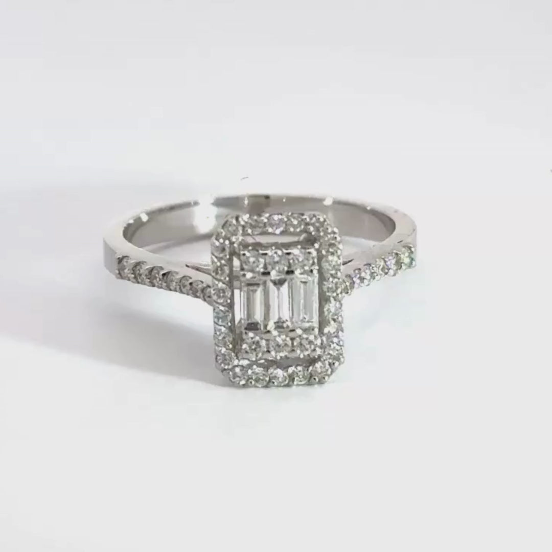 18CT White Gold Baguette Halo Diamond Ring Cluster