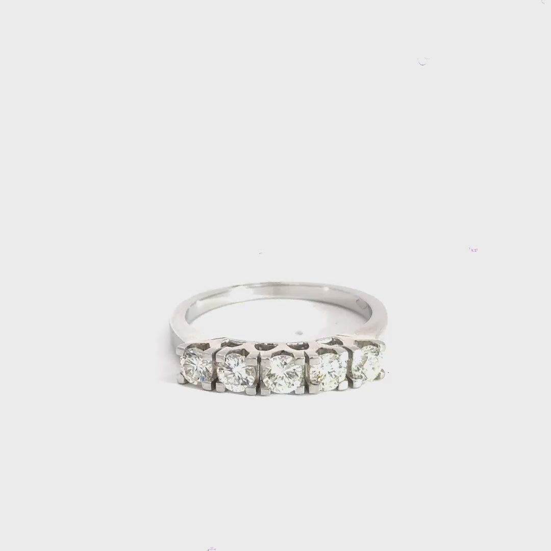 Elevate your elegance with this stunning 18ct white gold 5-stone diamond band. Featuring five brilliant round cut diamonds, each expertly claw set, this ring showcases a beautiful blend of sparkle and sophistication. The sleek 18ct white gold band adds a modern touch, making it perfect for any occasion.