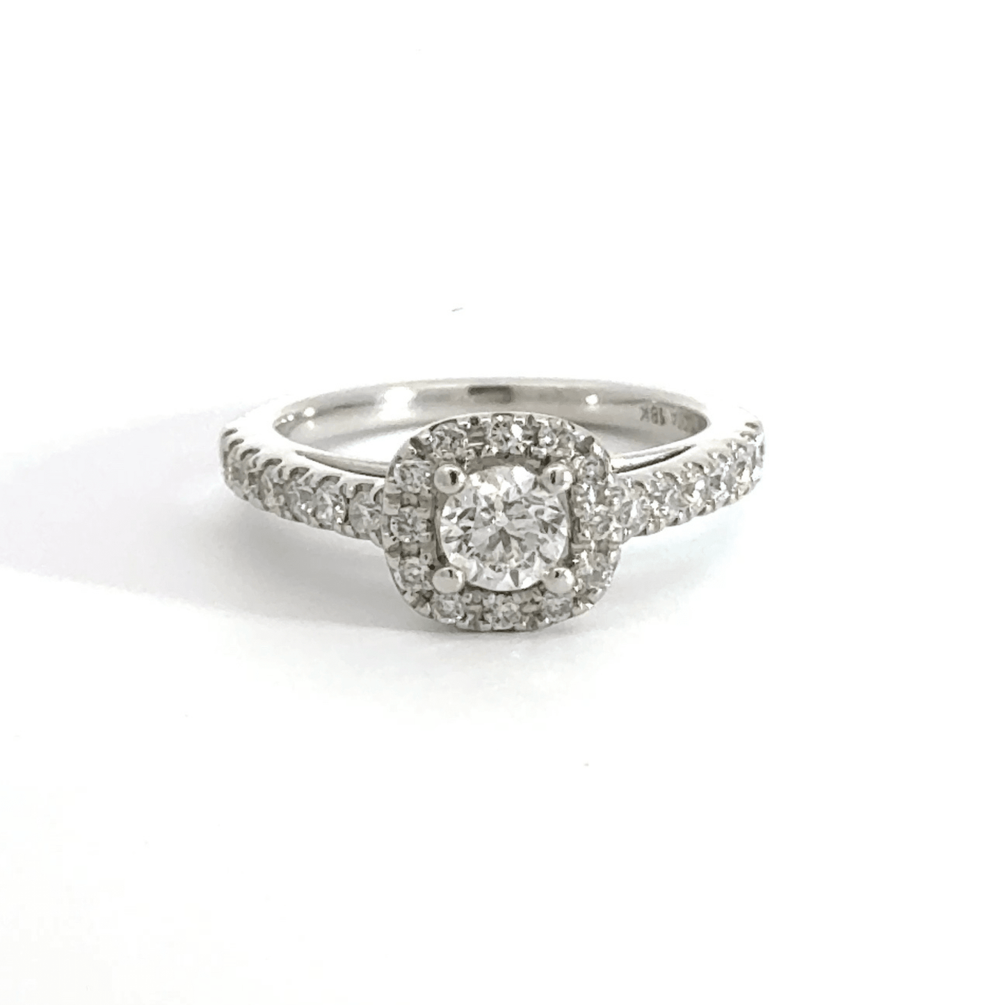18ct White Gold Diamond Solitaire Halo Ring
