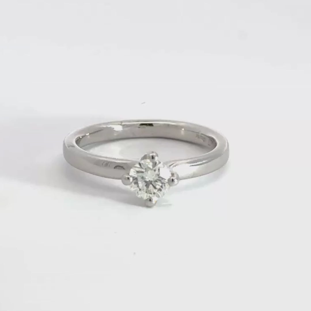 This mesmerising hand crafted ring has a 18CT white gold band accompanied by a beautiful 0.40CT solitaire diamond. This diamond is H colour and SI3 clarity, which would be perfect for anyone is a size:J1/2