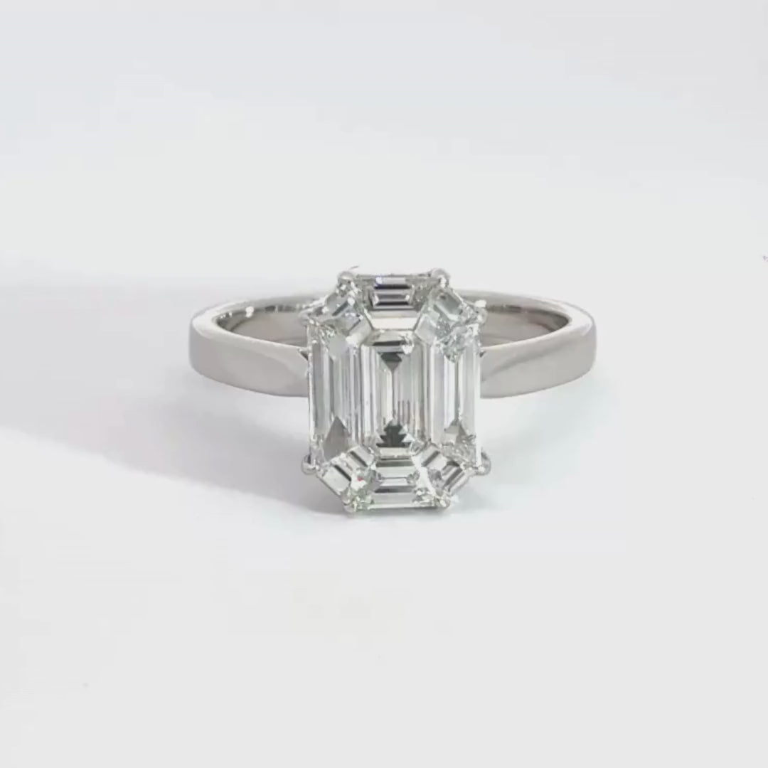 18CT White Gold Emerald Cut Solitaire Diamond Ring