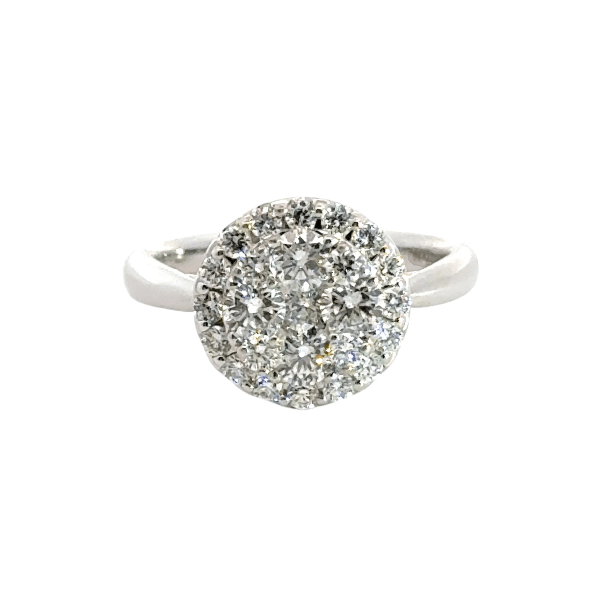 18CT W/G HALO RING DIA 1.00CT E/VS1