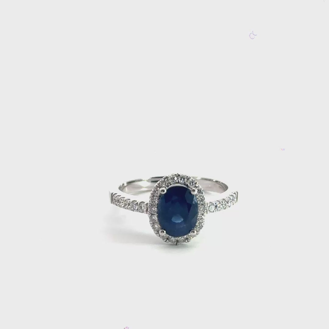 18CT White Gold Halo Sapphire Diamond Ring