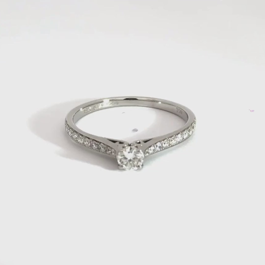 A beautiful designed 18ct white gold Solitaire Diamond ring with Diamond shoulders totalling 0.45ct Diamond G Colour SI1 Clarity made to perfection for the perfect proposal. Size J