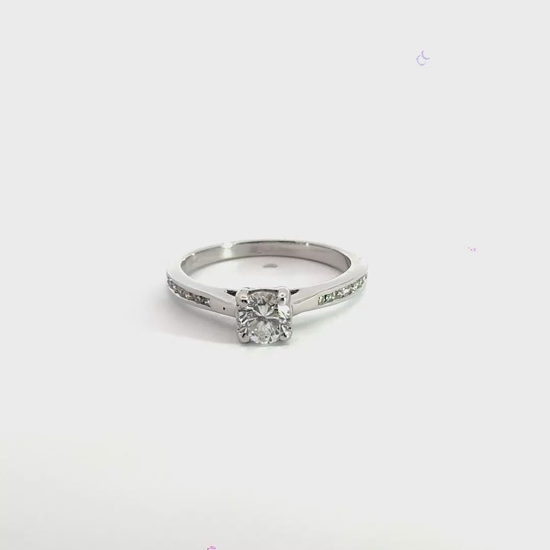 18ct White Gold Diamond Ring with Round Centre Diamond and Channel Set Shoulders