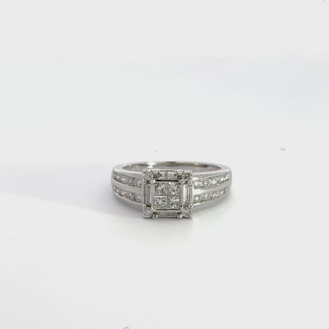 18ct White Gold Diamond Ring with Illusion Set Centre and Channel Set Shoulders