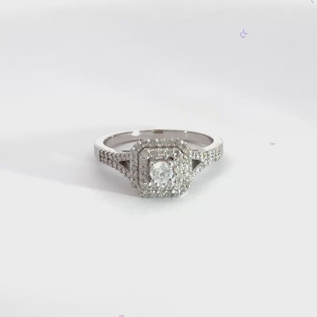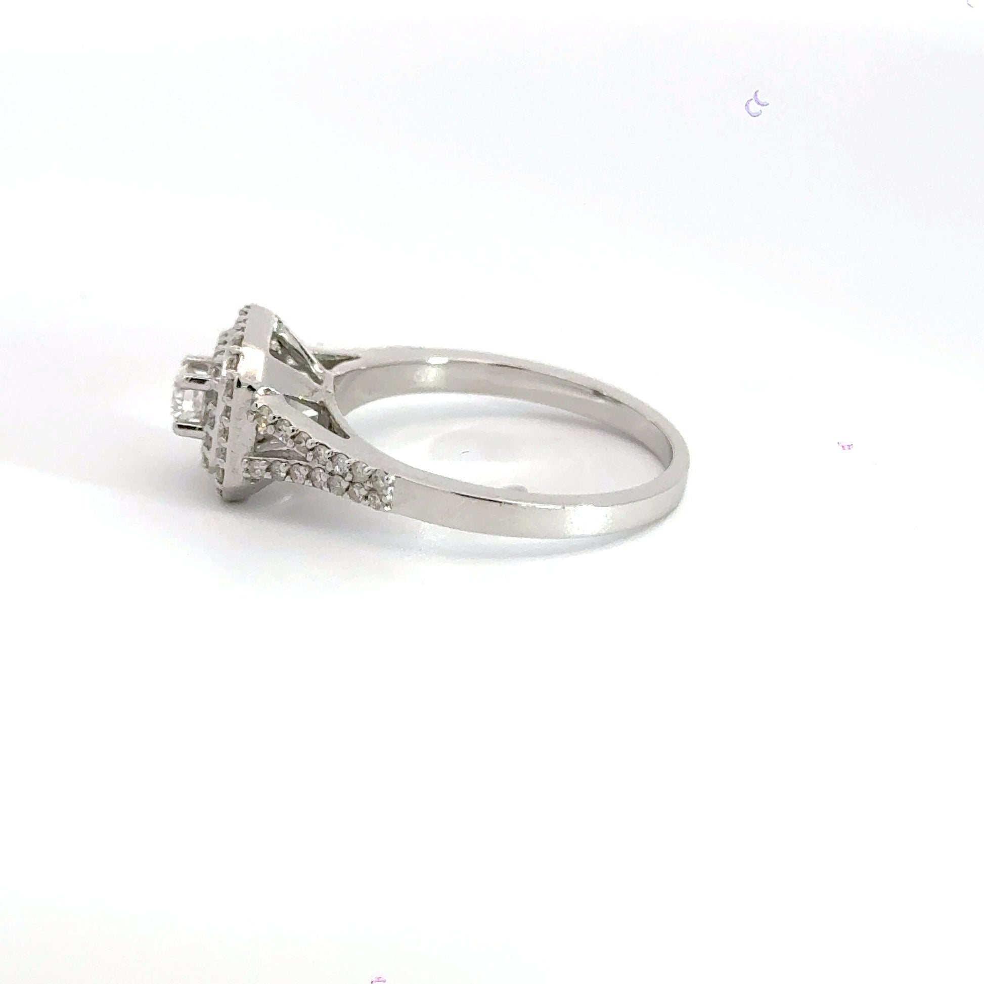 18CT White Gold Square Halo Split Shoulder Diamond Ring