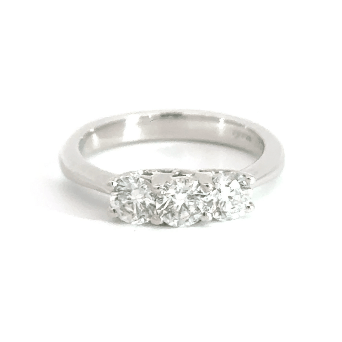 Embrace timeless elegance with this stunning 18ct white gold trilogy ring. Featuring three brilliant round cut diamonds, this exquisite piece totals 1.00ct creating a dazzling display of light and sparkle.