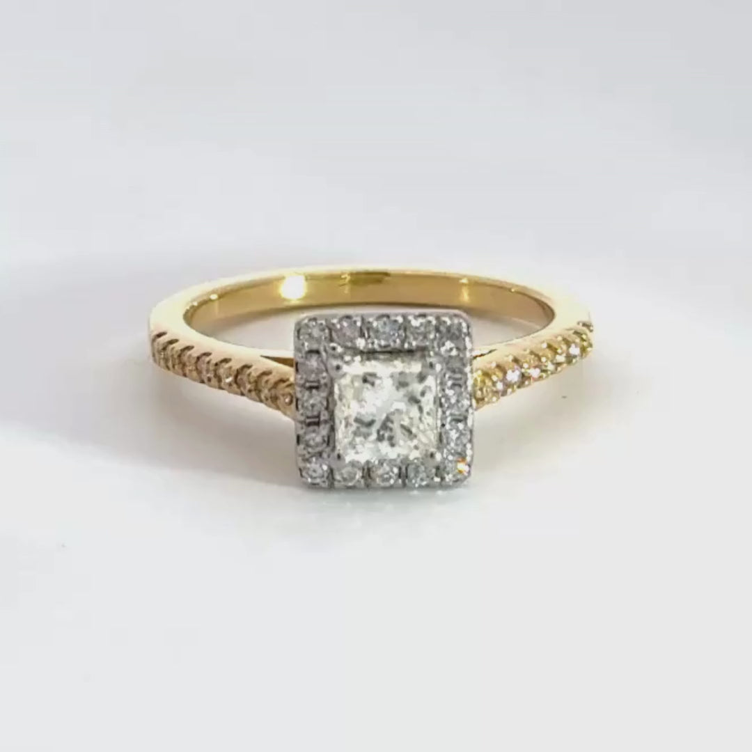 18CT Yellow Gold Princess Cut Halo Diamond Ring