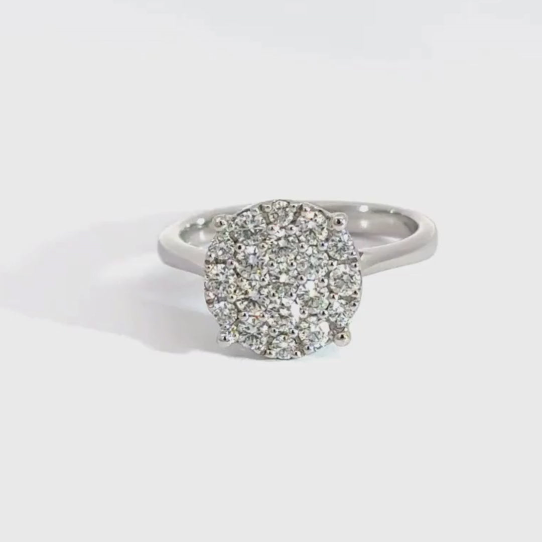 9ct White Gold Diamond cluster of brilliant round cut diamonds set on a 9ct white gold smooth band 0.50ct diamond total G Colour SI1 Clarity size L