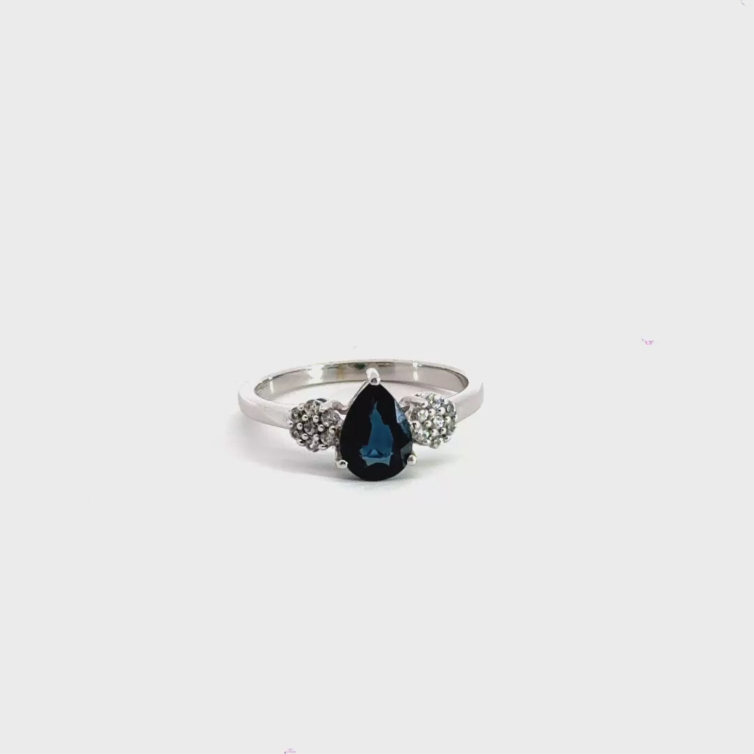 Add timeless sophistication to your jewellery collection with this stunning 9CT White Gold Teardrop Ring, featuring a 0.50CT Sapphire and 0.10CT Diamond accents. The deep blue sapphire, beautifully set in an elegant teardrop design, is complemented by sparkling diamonds, creating a luxurious and eye-catching piece.