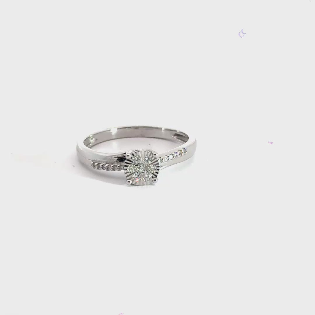 9CT White Gold Diamond cluster with diamond shoulders 0.20CT diamond total.