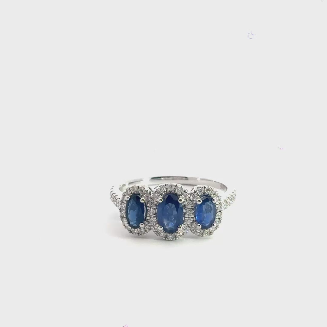 9CT White Gold Sapphire Diamond Halo Trilogy Ring