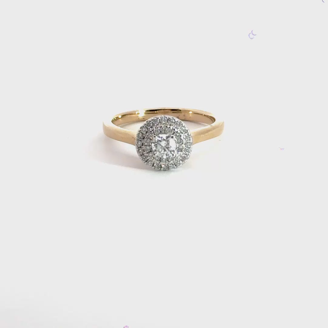9CT Yellow Gold Double Halo Diamond Ring