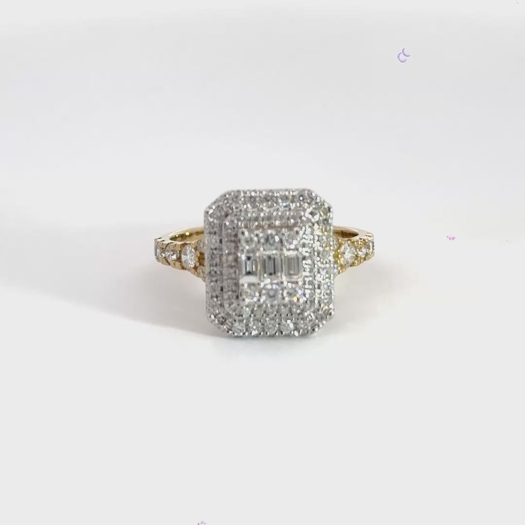 9CT Yellow Gold Halo Rectangle Baguette Diamond Ring