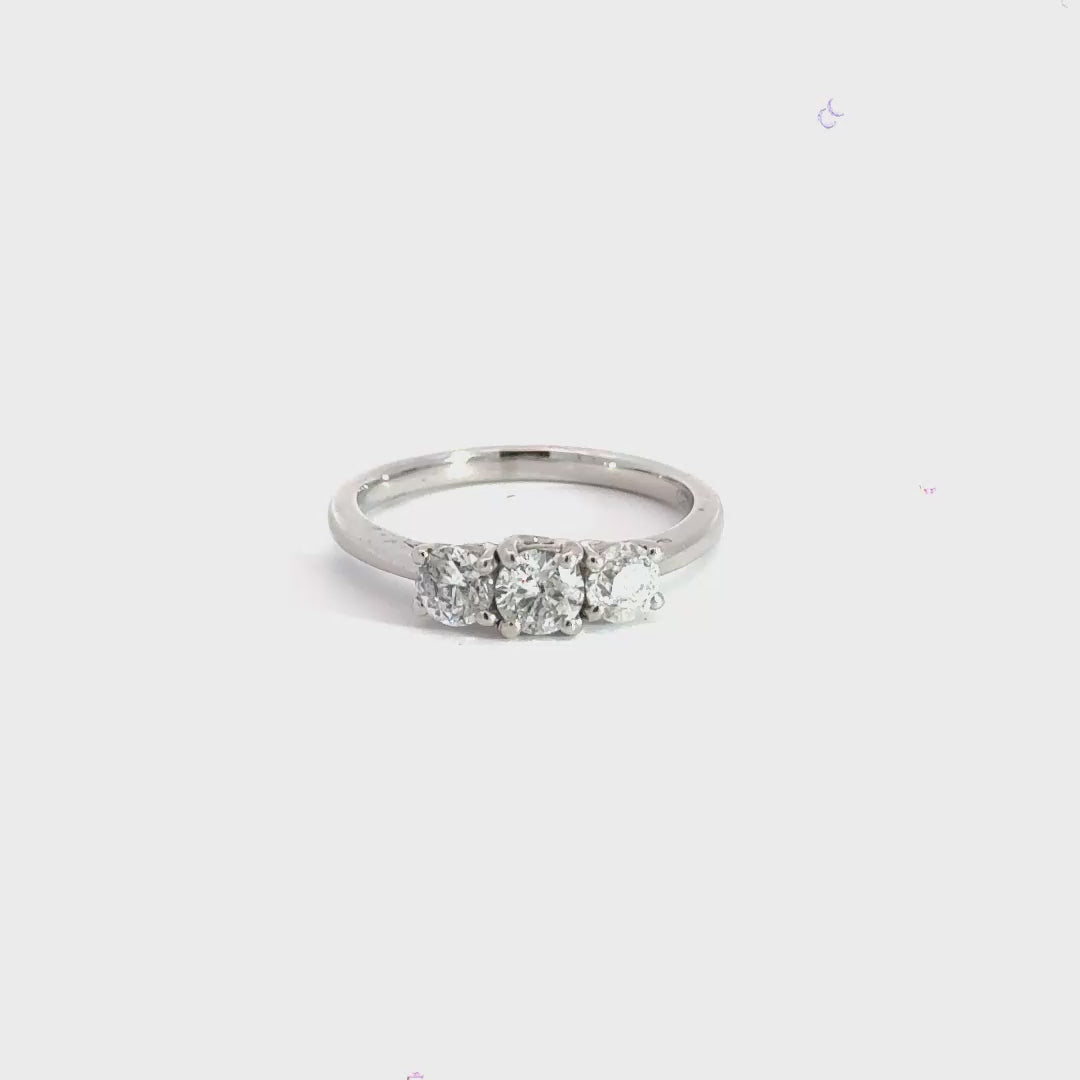 Celebrate your love with this exquisite platinum 3-stone trilogy ring. Featuring three brilliant round cut diamonds, this stunning piece totals 1.00ct, creating a beautiful display of brilliance and elegance.