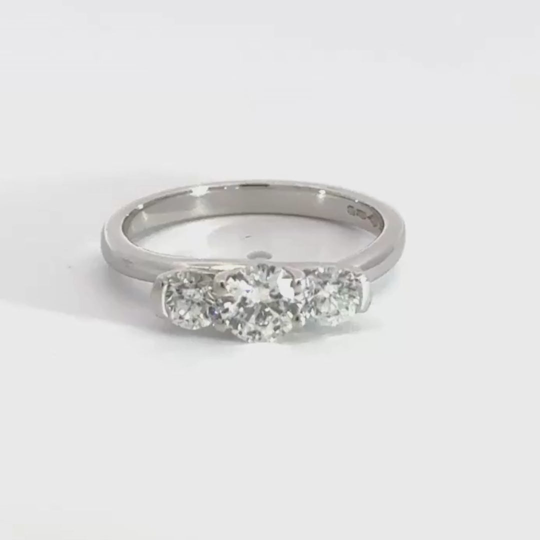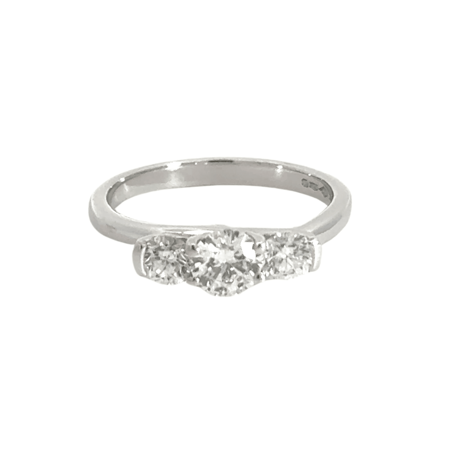 Explore our Platinum Diamond Trilogy Ring, featuring three brilliant round-cut diamonds totalling 0.60ct With E colour and VS1 clarity, each diamond radiates exceptional brilliance and clarity, making this ring a stunning symbol of enduring love and commitment. Crafted in luxurious platinum, it’s the perfect choice for any special occasion or as a timeless addition to your jewellery collection. Size I