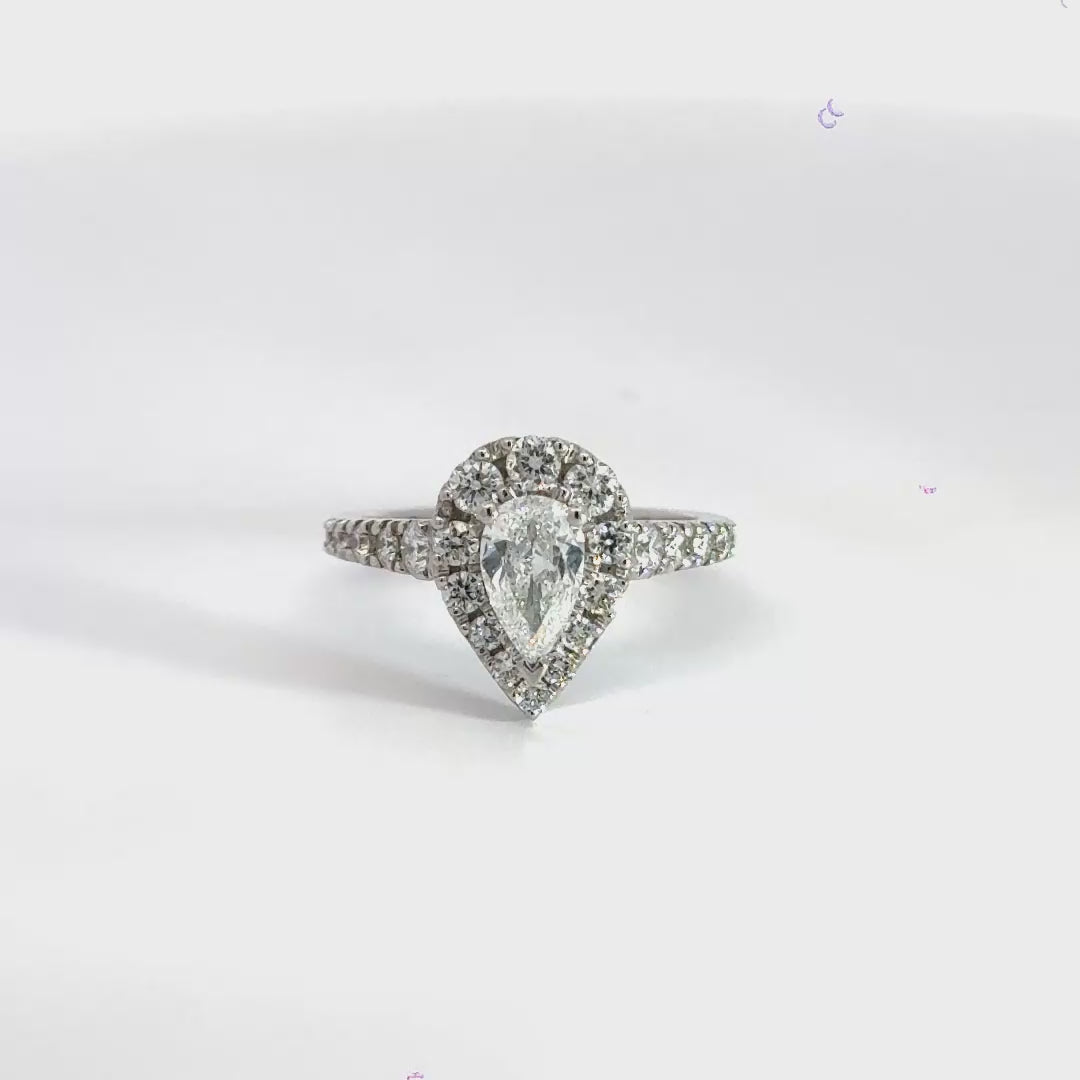 Platinum Teardrop Diamond Claw Set Diamond Halo Ring