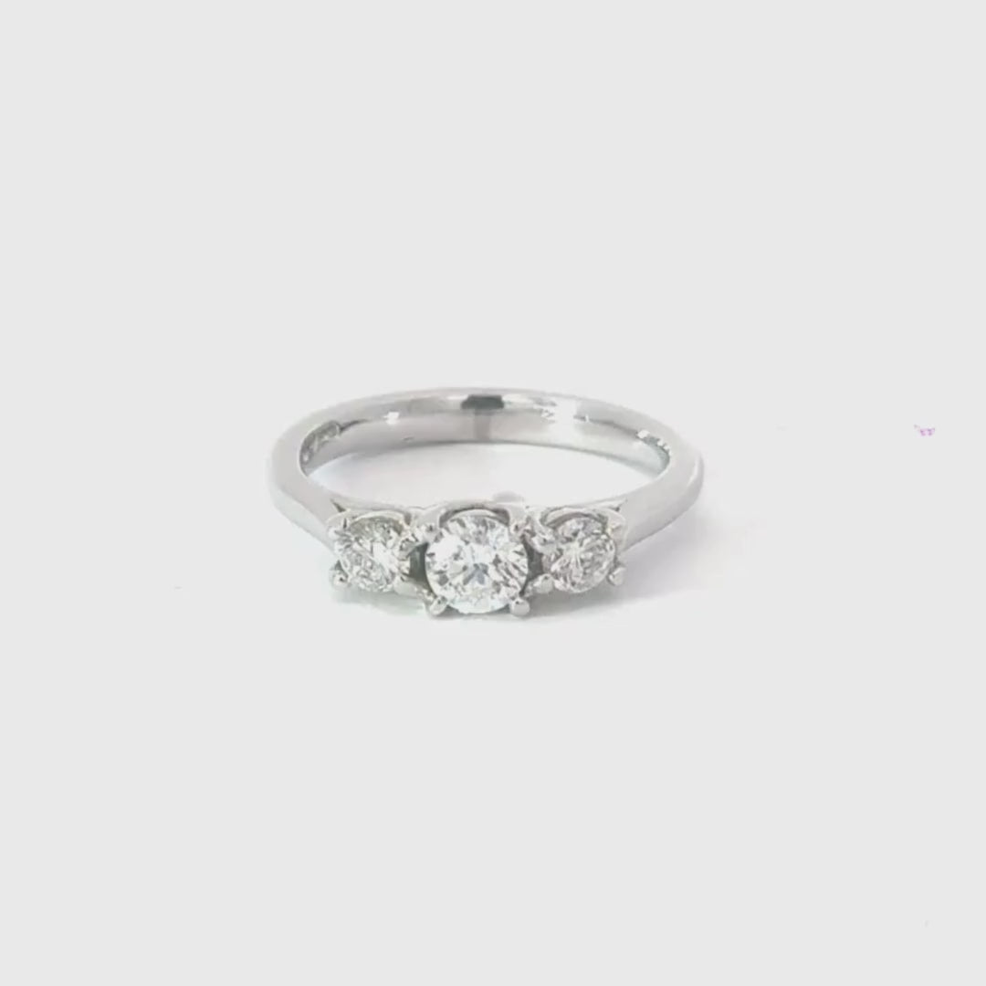 This gorgeous platinum engagement ring features a trilogy of round cut diamonds, complemented by a plain band, is the perfect minimalist, yet elegant ring for anyone. These diamonds are a total of 0.50ct with the centre stone being slightly larger than the those on either side, to highlight the gorgeous trilogy setting. Product code: PLATINUM-20